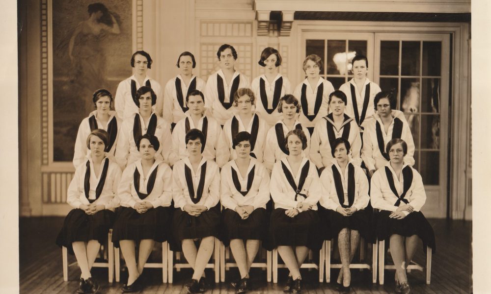 Many long-standing traditions were established during this era. As early as 1912, Mrs. Houghton set up a competition between older girls called “roses” and younger girls called “buds.” By 1918, faculty had adopted the name of “thorns” and their residence was known as “Thorn Cottage.” A gym exhibition on March 4, 1916 was an early version of Gym Night. However, it was in response to the hazing of new girls by the old that led Mrs. Houghton in 1918-19 to divide the school into two teams: the Roses and the Whites.